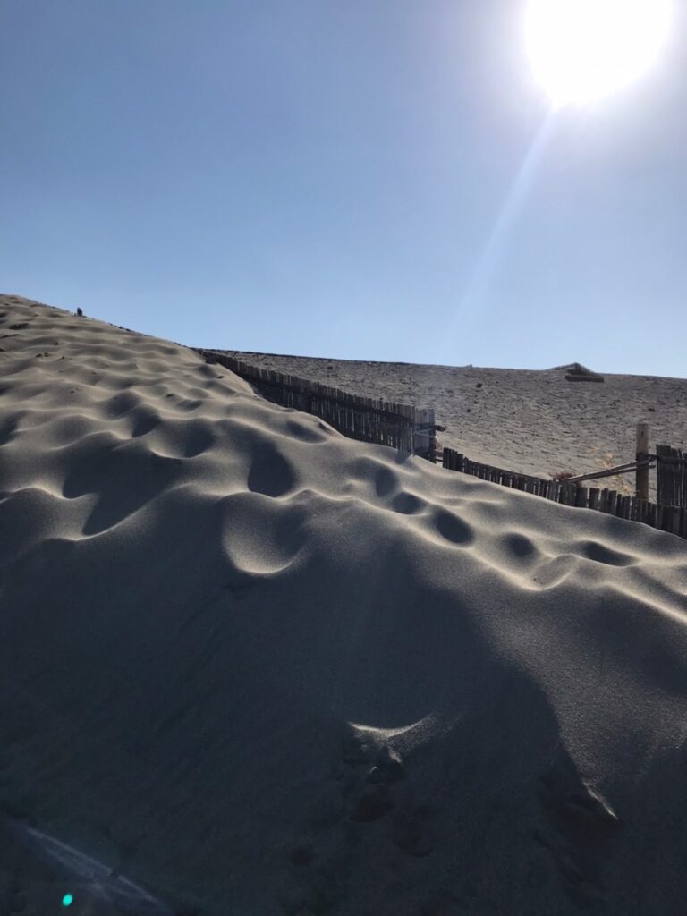 砂丘に足を踏み入れた瞬間、無数の砂粒からなる砂の海が視界を埋め尽くしました。そこには、都会の喧騒や日常の雑音など微塵も存在せず、砂と風の音だけが穏やかに響いていました。太陽の光を浴びて輝く砂粒の一つ一つが、まるで小さな宝石のように見え、この美しさに一瞬で心を奪われました。