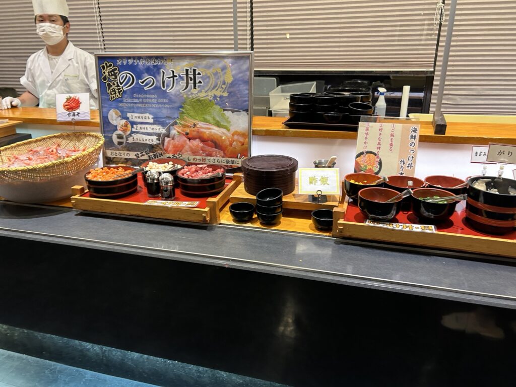 食事はバイキングスタイルで、和洋中バランスよく揃っていました。特に新鮮な魚介類のお刺身や、子ども向けのメニューが豊富だったのが印象的。地元千葉の食材もたっぷり使われていて、どれも美味しかったです!!海鮮のっけ丼は好きなだけ具材をのせられるのでとても楽しめました!!